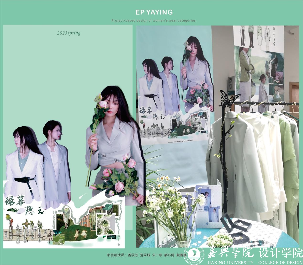 服饰20级《项目化女装品类设计》课程主要目标和任务是以项目化教学方式将企业产品研发模式引入课堂,使学生全面了解服装产品开发过程与环节,掌握产品设计开发的要点与方法,并以团队合作形式共同完成项目内容。课程聘请雅莹主理设计师孙秋丹作为校外指导教师,课程内容同时按EP YAYING品牌定位与风格进行模拟设计开发。课程同时还聘请嘉兴思创服装公司陈义兵老师作为技术指导,以确保课程各个环节形成闭环,以达到预期教学效果。
