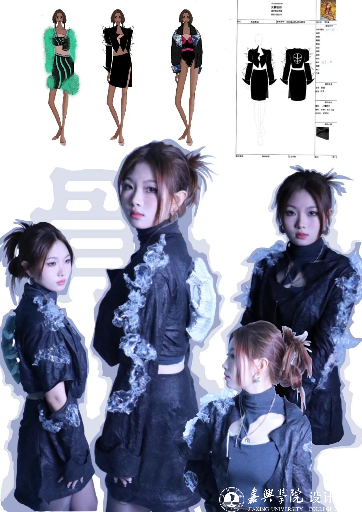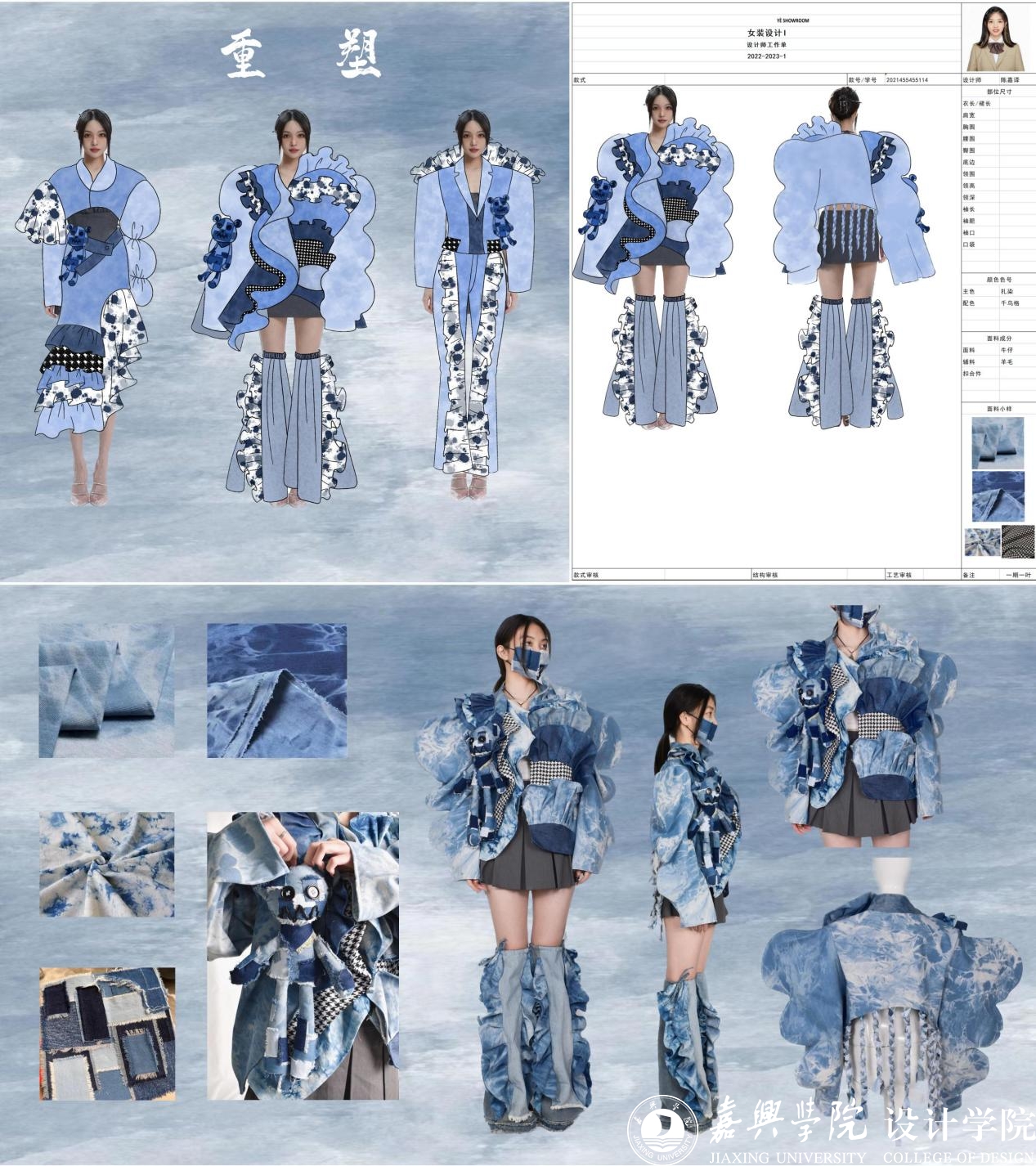 《女装设计1》作为服装与服饰设计专业核心课程,已经成功立项嘉兴学院实践教学专项改革研究项目,且已完成第3轮教学建设期。课程通过女装设计精品在线课程平台的数字化教学、校企合作导师的一课双师教学,培养学生对女装设计的理解和应用能力。服饰21级学生在课程期间通过服装造型要素、方法论、外廓型、内细节等实训项目的训练,进而开展单品的设计与制作,最终完成主题为“设计自己”的初创作品。