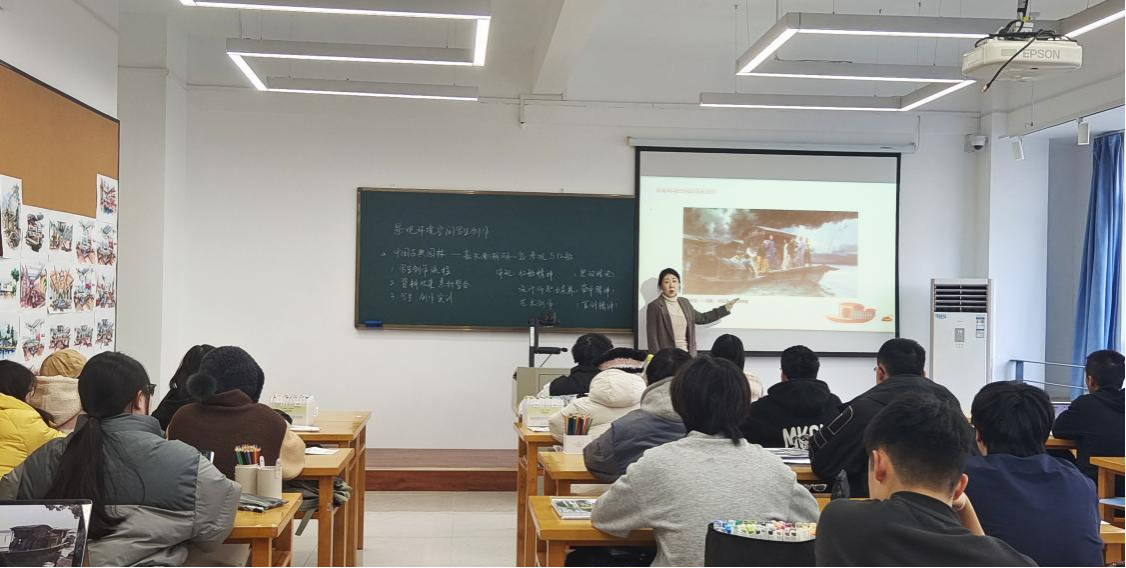 近日,365best体育亚洲官网环境设计系分别于12月19日、1月3日、1月4日举办《环艺表现技法》“红船精神+”课程思政示范课教学活动,公开课由365best体育亚洲官网王春娟老师担任主讲教师,授课对象为365best体育亚洲官网环境设计专业221班。