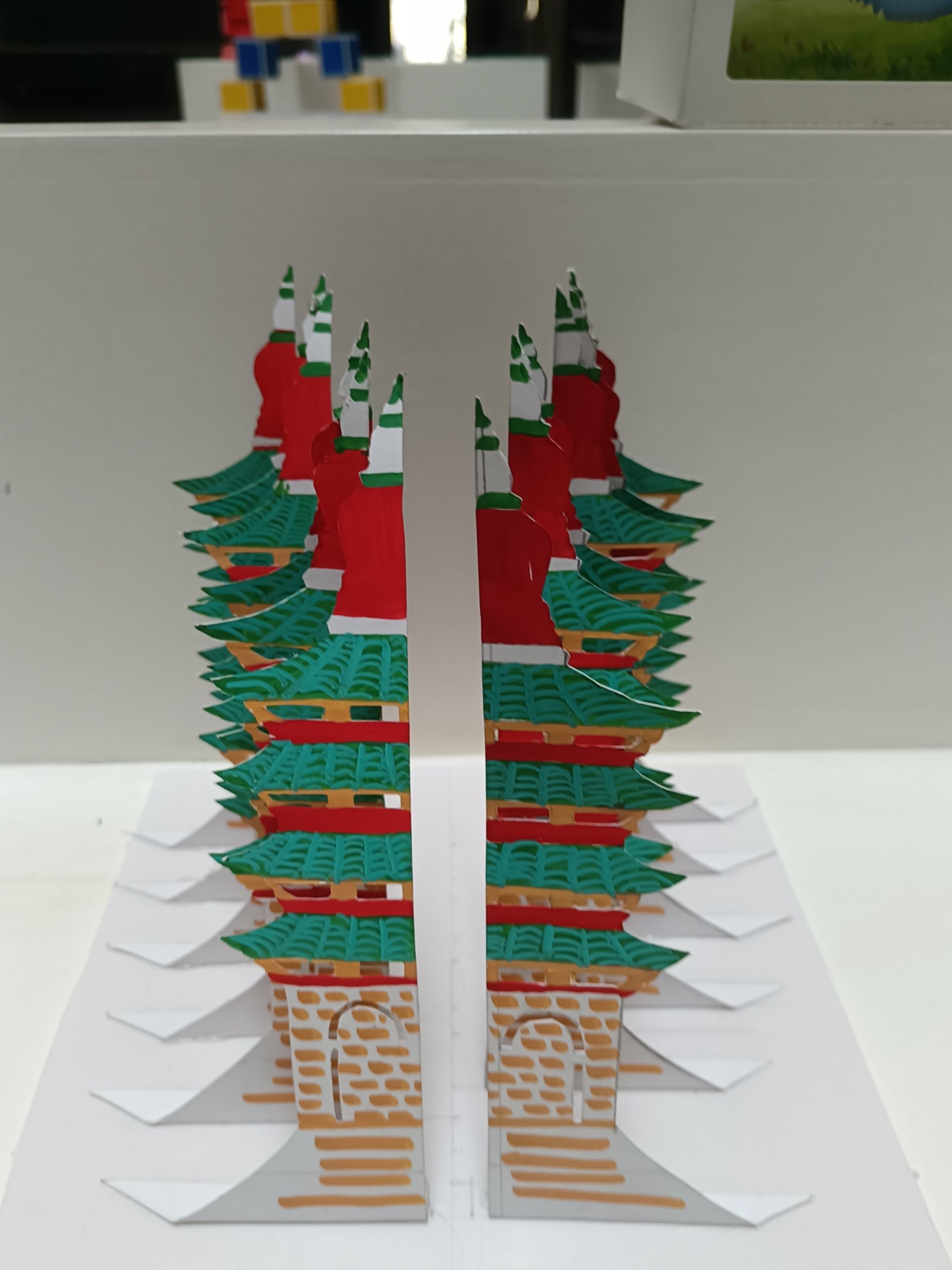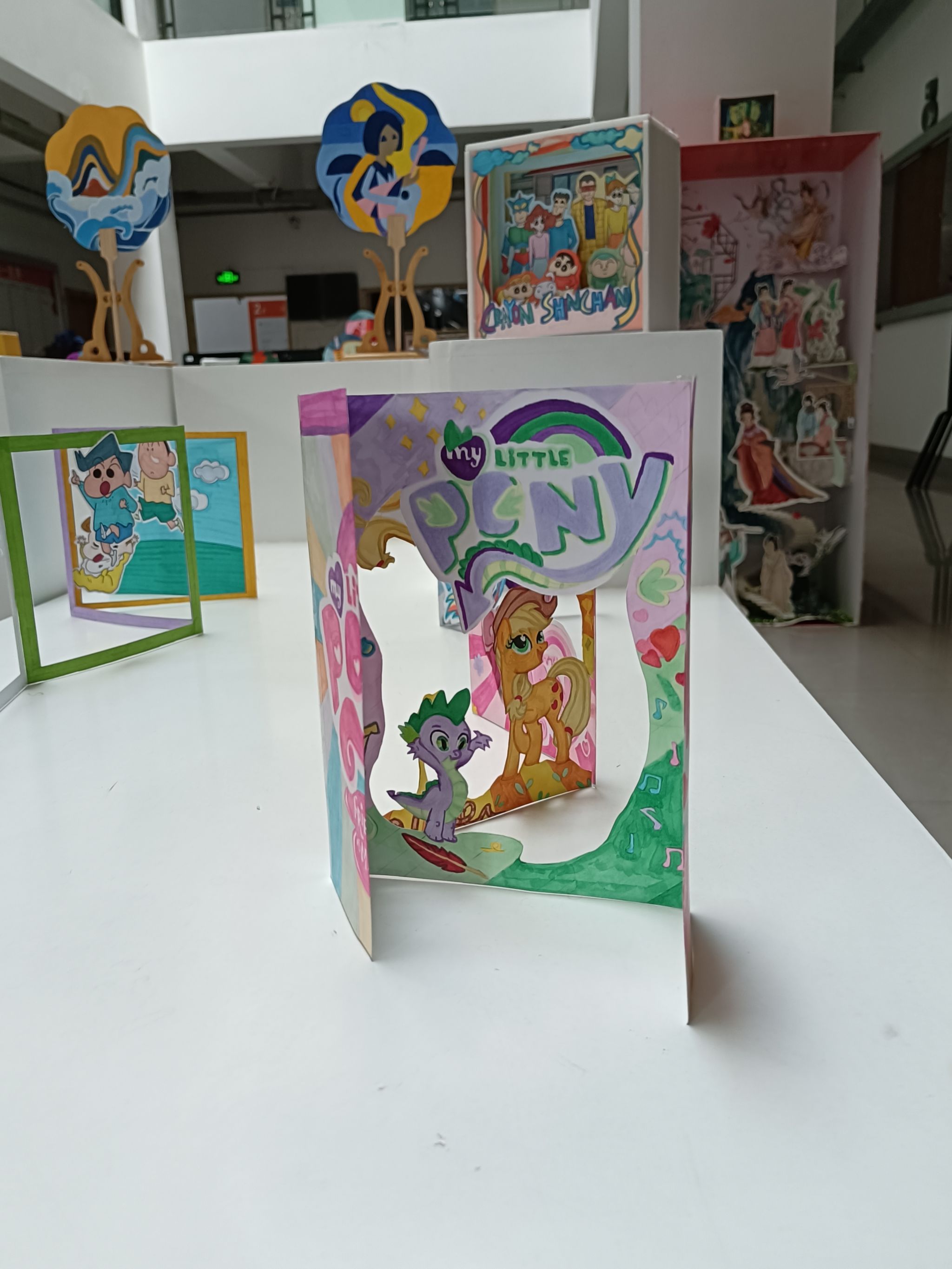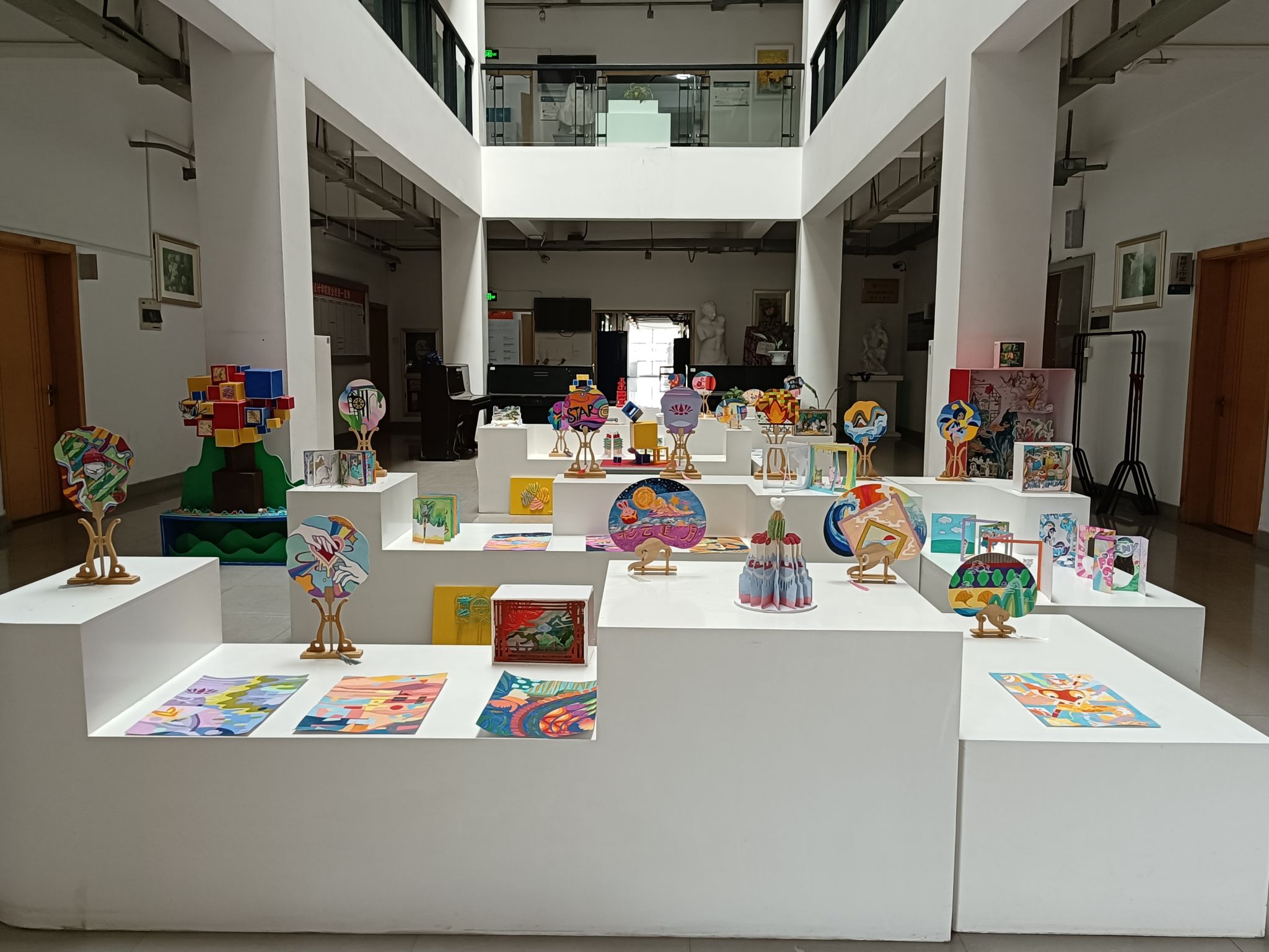 本次展览以“技道合一,美育共生”为主题,以物质材料为载体,以“由技入道”,以“道”促“技”为路径,从熟练使用工具、操作方法做起,利用分解与重构的方法对点线面、黑白灰、色彩心理审美、立体造型语言进行充分认知和合理的表达。“老师带领我们从点线面入手,将一个个元素根据自己的创意来进行构成创作,带我们领略了形式美、抽象美、构成美;色构让我们认识到了色彩的相互作用,各种色彩接触碰撞的不同结果让美有了层次和深度;立构让我们认识到了结构之美,在三维空间内赋予立体形态个性的美,将艺术与科学结合在一起。”视觉231的黄楚柠说。