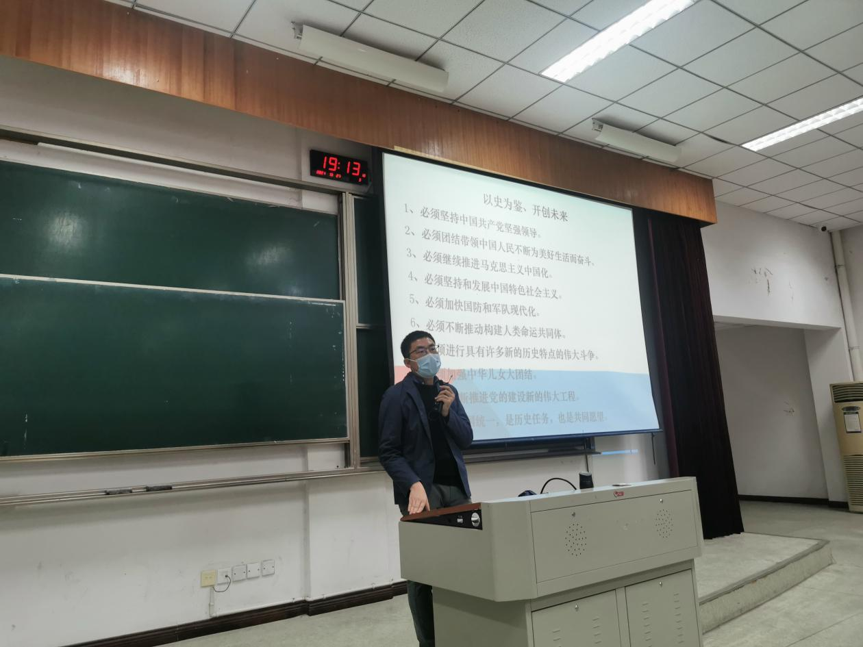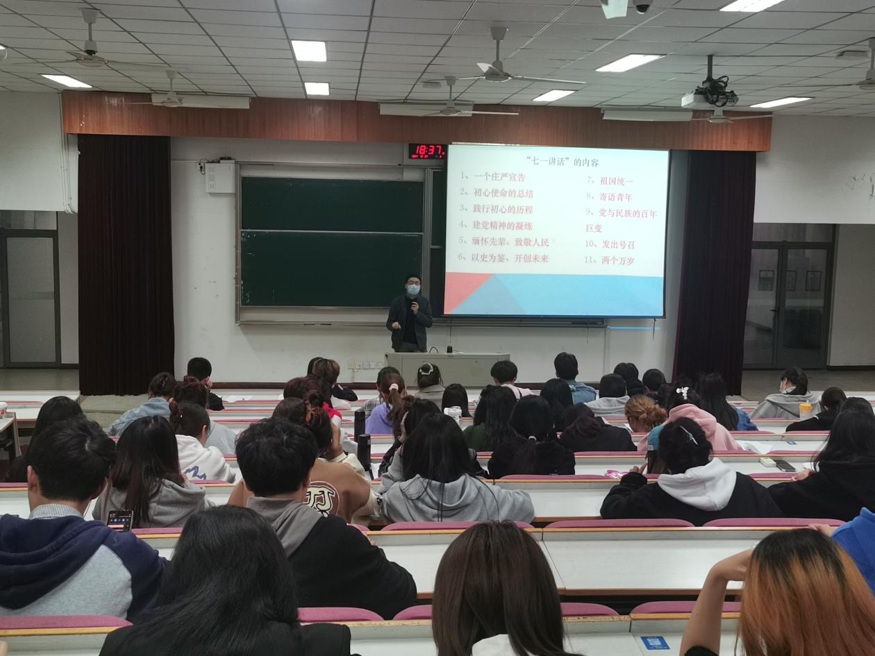 刘老师将习近平总书记“七一讲话”分为11个部分,细致全面的逐条分析了其中内涵,对伟大建党精神进行了深刻解读。他号召全体学生党员们要以史为鉴、开创未来,积极投身到建设中国特色社会主义现代化强国事业中来。