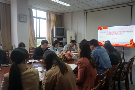 会上,与会人员集中观看了习近平总书记在浙江工作期间视察学校的影像,重温习近平总书记在浙江工作期间致学校办学90周年贺信原文,并围绕重要贺信精神踊跃发言,畅谈学习体会。