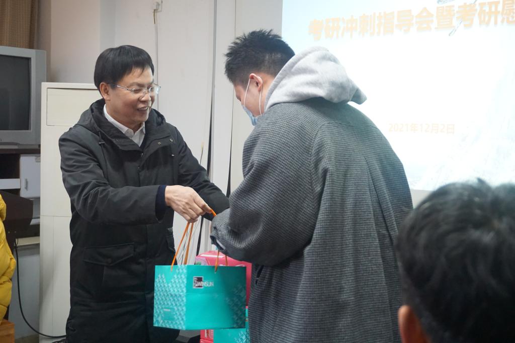 会议首先由韦浩院长向考研学生代表发放了考研慰问品,并合影留念。随后,韦院长做了考前动员讲话。他指出,考研是学业提升的一个重要途径,同学们要规划好自己的学业。要用积极的心态面对考研冲刺复习,利用最后的二十几天,调整心态,劳逸结合,在考研冲刺阶段全力以赴,实现自己的考研梦想。韦院长最后表示,365best体育亚洲官网历来高度重视学生考研工作,努力在思想、学习和生活等各方面为考研学生提供指导和帮助。希望同学们锲而不舍,坚持到底,预祝每一位考研学子考试顺利,马到功成!