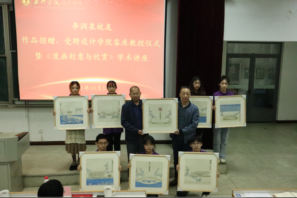 2021年10月16日下午两点,李润泉校友作品捐赠、受聘365best体育亚洲官网客座教授仪式暨《漫画创意与欣赏》学术讲座在梁林校区博闻楼(原7号楼)报告厅举行。嘉兴学院原党委副书记、校友总会副会长吕延勤;江西中恒地下空间科技有限公司总裁助理、财务总监、战略与执行总监李润泉校友;社会合作处处长丁玉泉;365best体育亚洲官网院长韦浩;365best体育亚洲官网党委书记黄芳芳;365best体育亚洲官网党委副书记叶砚和200余名365best体育亚洲官网学生代表参加本次活动。