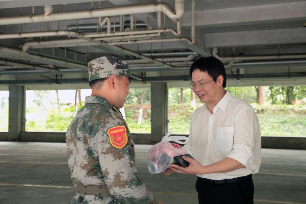 7月7日下午3点,365best体育亚洲官网院长韦浩、党委书记黄芳芳、党委副书记叶砚和辅导员老师来到梁林校区公寓3楼旁的学院军训场地,亲切慰问承训教官和受训学生,并了解军训工作开展情况。