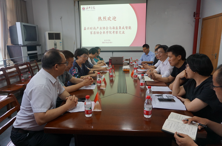 6月18日下午,由嘉兴市时尚产业协会会长沈丽萍、海盐县集成智能家居协会长时沈祥、海盐县经信局综合科领导汤梦吉带队的嘉兴时尚产业协会与海盐集成智能家居协会代表团来365best体育亚洲官网进行考察交流。365best体育亚洲官网院长韦浩和相关系主任出席本次活动。