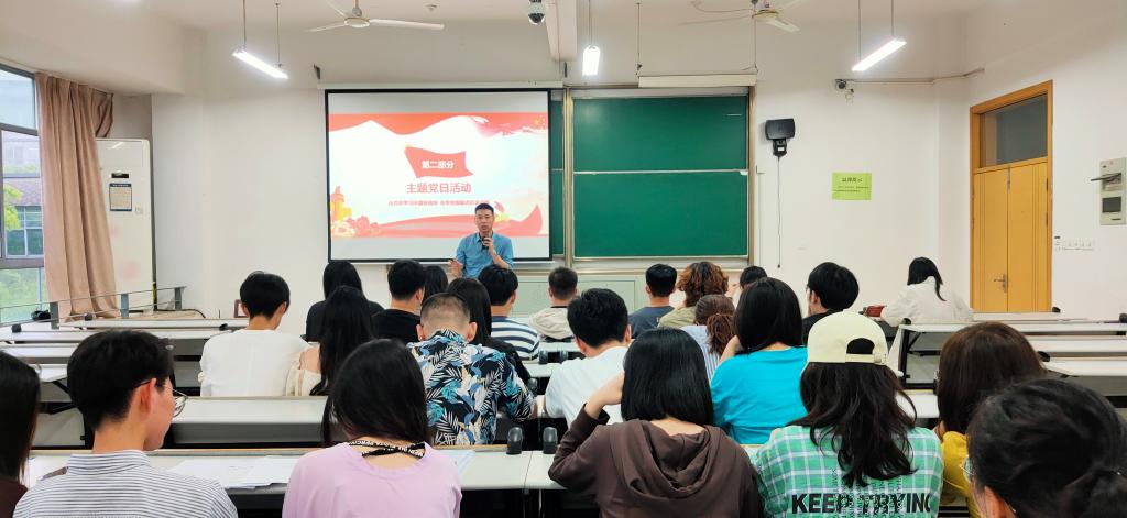 会议第二部分,召开了毕业班“从党史学习中激发信仰 在毕业新起点追求卓越”为主题的党日活动。学院党委副书记叶砚给毕业班党员上了一场微党课,将党的诞生地的党史教育与学生毕业离校的现实境况相结合,强调毕业生党员毕业后要学会了解社会,学会独立,要敢为人先、敢于突破,以聪明才智贡献国家,以开拓进取服务社会。同时,号召党员同志毕业前为母校、为群众做一件好事,同学们踊跃发言,表示离校前要在文明离校、考研经验分享、对室友心理疏导等方面为群众做一件好事。
