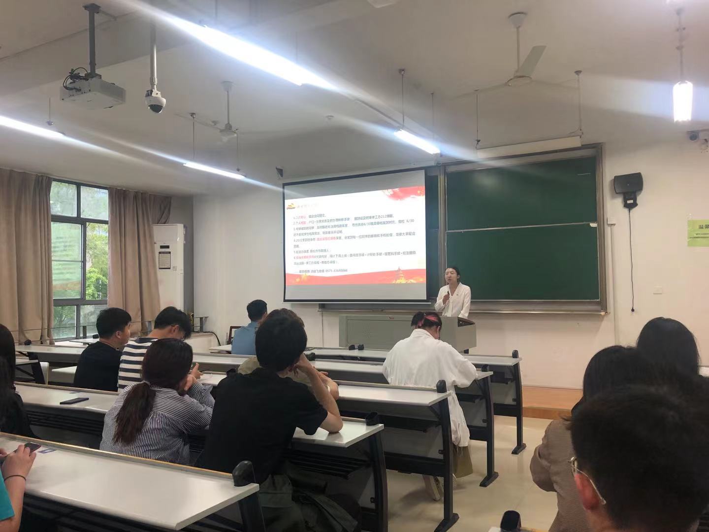 会议第一部分,学工办苏老师就党团关系转接、就业单位落实、校友工作、文明离校等事宜作了布置,针对学生就业毕业的手续流程问题作了答疑解惑。