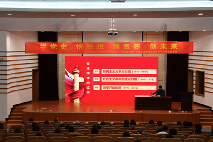 为深入学习贯彻习近平总书记在党史学习教育动员大会上的重要讲话精神,扎实推进学院党史学习教育活动开展。5月8日下午,365best体育亚洲官网党委邀请我校马克思主义学院李庆喜老师在梁林校区TCL报告厅举行党史学习专题讲座,讲座由我院党委副书记叶砚主持。365best体育亚洲官网全体学生党员、入党积极分子及中国美术学院设计制造业协同创新中心党支部学生党员代表一同参加了本次活动。