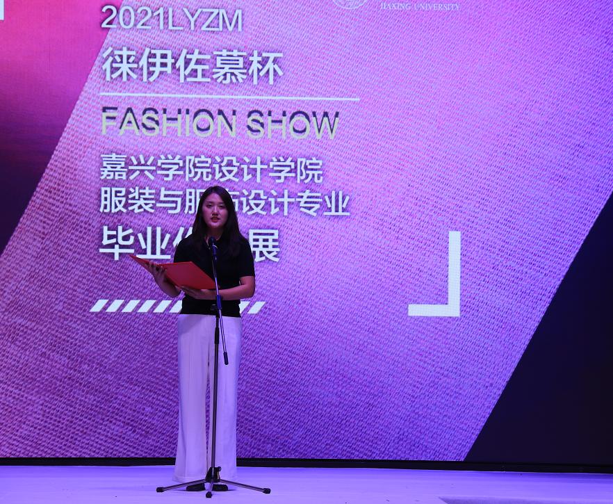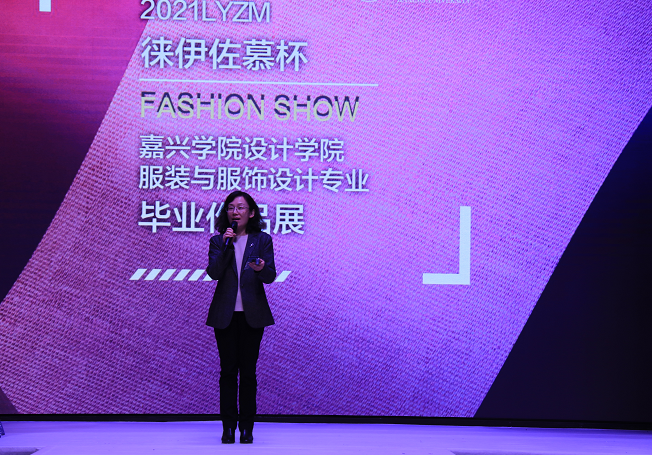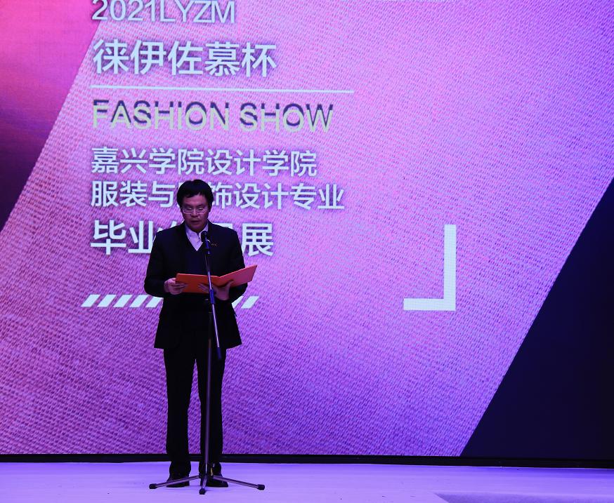 张琦代表学校宣布“徕伊佐慕”杯2021服饰专业毕业设计作品动态展演开幕。