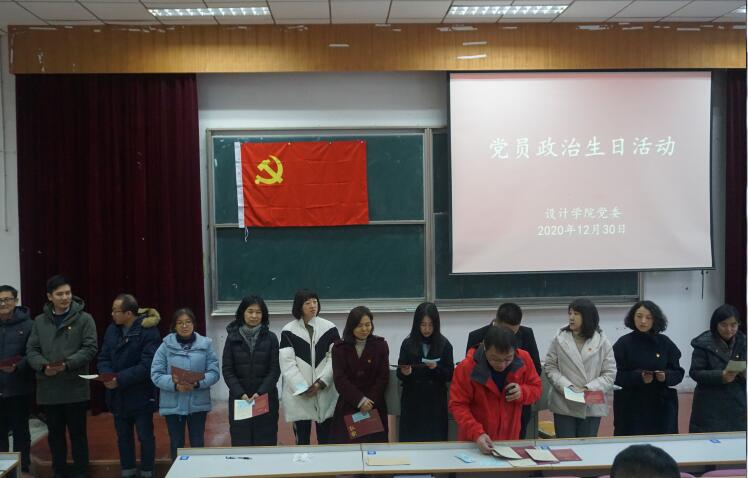 张杰、薛峰代表学院党委向2020年下半年过政治生日党员赠送了“政治生日贺卡”和书籍。全体党员面对党旗,高举右拳,重温了入党誓词。