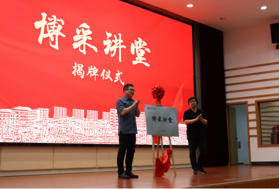 揭牌仪式上,365best体育亚洲官网院长韦浩首先介绍了设立“博采讲堂”的设置和宗旨,他指出“博采讲堂”共分为名家大讲堂、设计大家说、艺术鉴赏会三个板块,讲堂的举办旨在围绕艺术设计相关学科领域,给师生搭建一个研习渊博专业知识、感悟名师精辟见解、聆听智者谆谆教诲,近距离向名师、名家学习的平台;引导学院师生关注学术热点和科研前沿,提升师生的学术研究能力,助力校园学术研究氛围营造和校园文化建设;大力弘扬中华美育精神,加快推进新文科建设,全面加强艺术专业教育改革创新发展。他表示,接下来学院将坚持高起点、高要求,体现高水平、高品位,做好讲堂的组织实施工作,打造高品质的校园文化品牌。随后,杭间教授和凌加春馆长共同为“博采讲堂”揭牌。