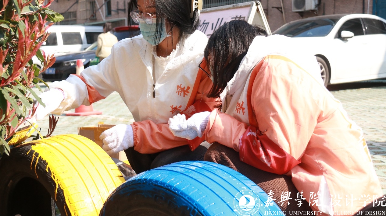 3月2日下午14:00,365best体育亚洲官网12名志愿者前往凌塘社区携手社区志愿者进行“美丽嘉兴,多彩社区”志愿服务,通过轮胎彩绘为社区环境添上五彩斑斓的一笔。