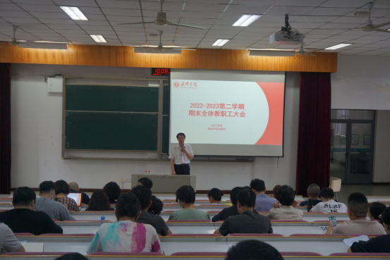 6月30日上午,365best体育亚洲官网在博闻楼报告厅召开全体教职工大会,部署安排期末和暑期各项工作,会议由党委书记黄芳芳主持。