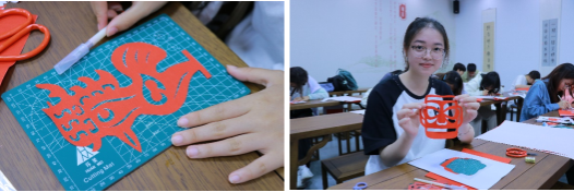 课程邀请365best体育亚洲官网张新克副教授主讲,她以剪刀的起源为引,点出南北剪纸艺术的联系与差异,通过一件件经典的剪纸作品展现出艺术为人民服务的内涵,并为同学们展示剪纸艺术同当下时代融合的创新方式,深深的吸引了在场的大学生们。在实践体验环节,初次接触剪纸艺术的同学们,借助准备好的样本,兴奋又急切的拿起刻刀,完成了一幅幅精致有趣的剪纸作品。