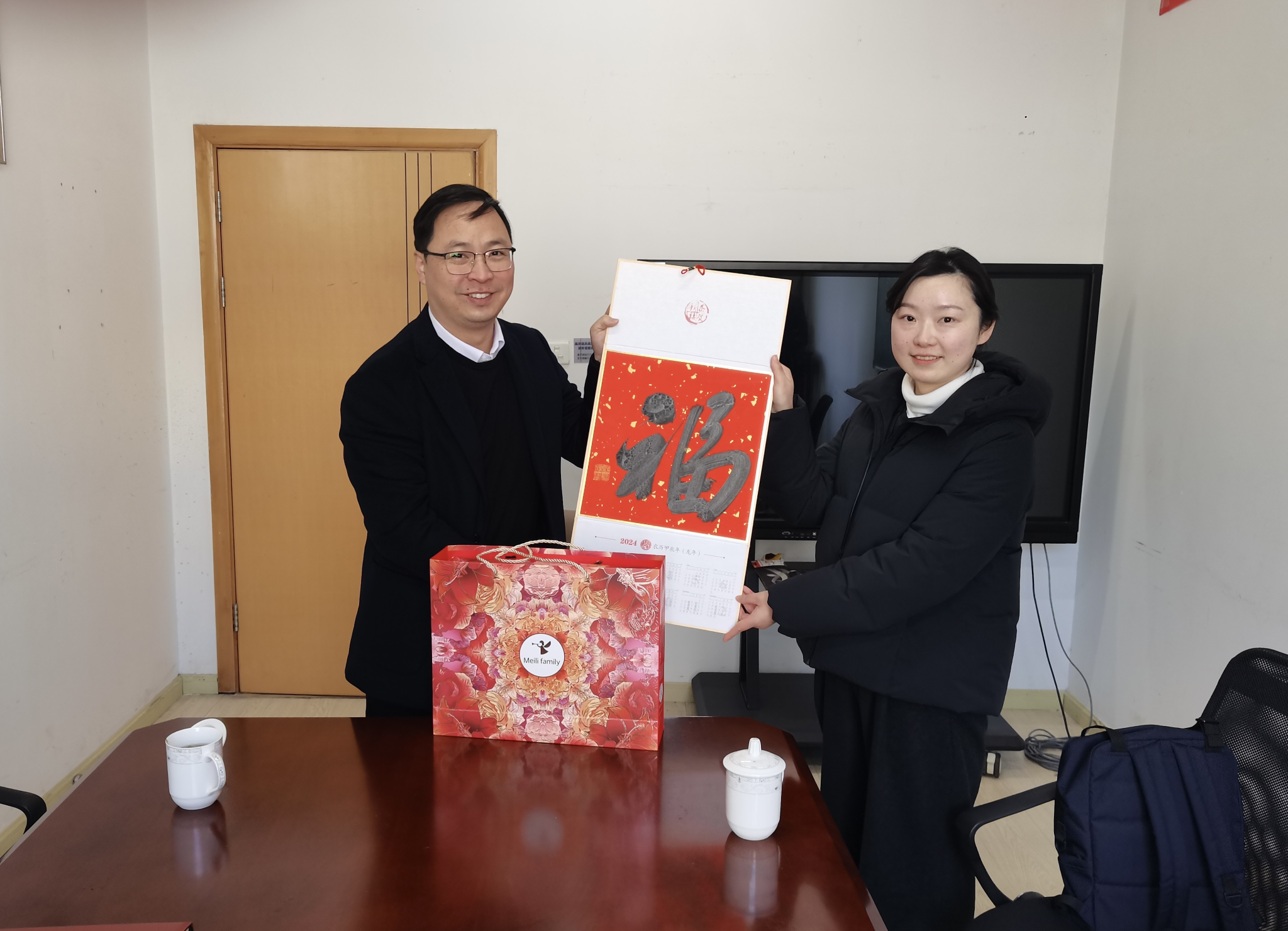 1月25日下午,在2024年农历春节即将到来之际,副校长王立玮走访慰问我院新进教师代表程慧博士,学院党委书记蒋建其陪同慰问。