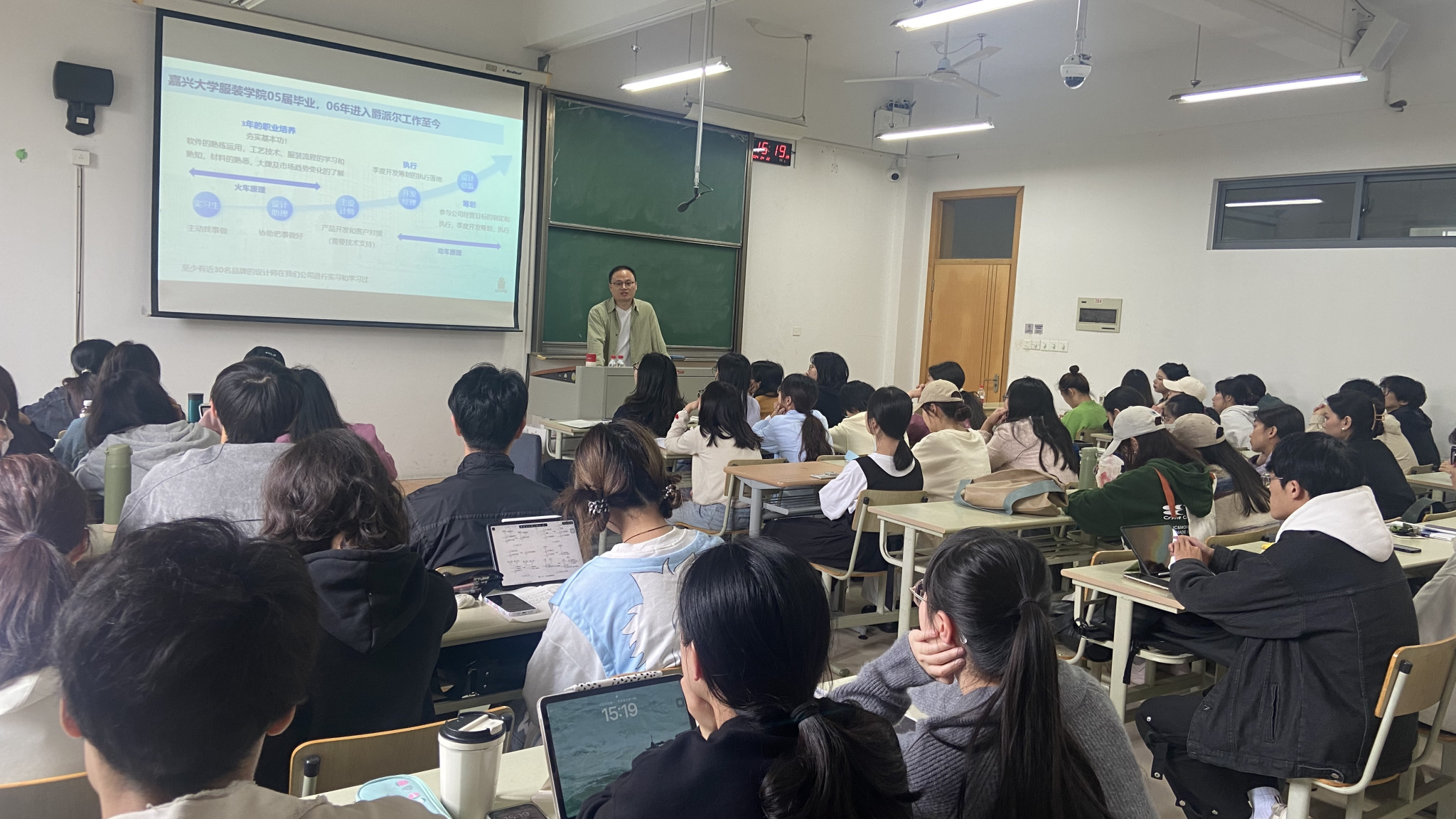 为增强大学生就业指导课程的教学实效性,让同学们更好的了解市场需求,进一步深化校企合作协同育人,4月22日,服装设计与工程专业的《大学生职业规划与就业指导2》课程邀请了浙江爵派尔服饰有限公司设计总监,同时也是学院2005届优秀校友杨卫勤,为同学们讲解了一堂生动的就业指导课。