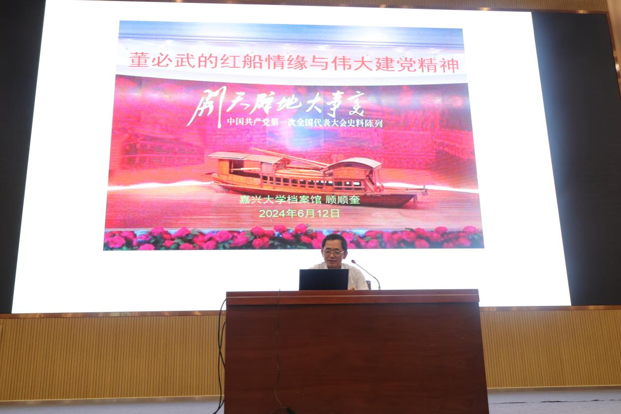 嘉兴大学党委委员、副校长王立玮,上海工程技术大学党委常委、副校长夏春明出席了活动并致辞。活动期间,还进行了红色文化和学术讲座,嘉兴大学档案馆原馆长顾顺奎作了题目为《董必武的红船情缘与伟大建党精神》的讲座,同济大学设计创意学院教授、博士生导师陈健作了题目为《AI技术.人.绿水青山》的讲座。开幕式后,各位领导嘉宾在梁林小剧场二楼展厅参观了红色文化跨媒介艺术作品高校巡展系列作品。
