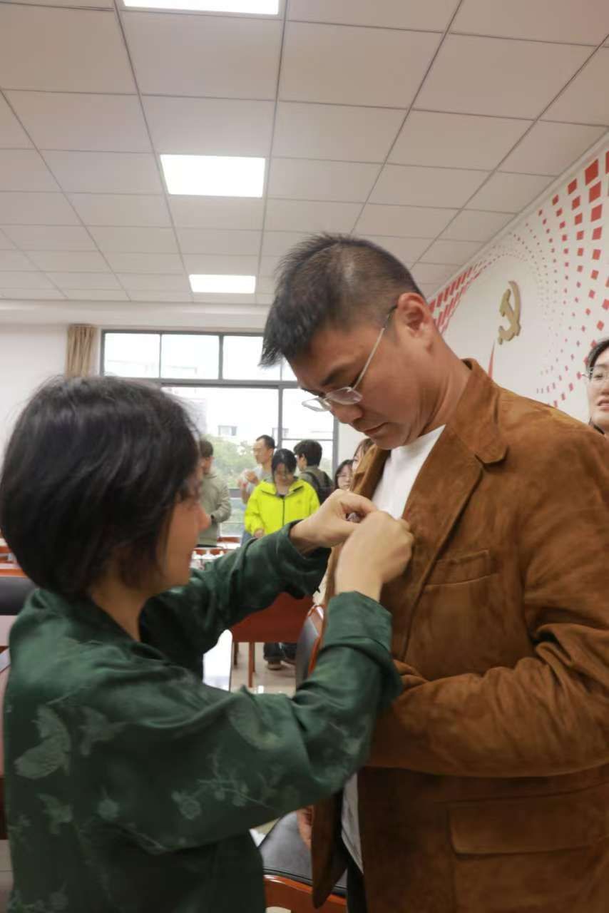 会议最后,365best体育亚洲官网教师代表徐利平教授和学院领导为服装设计与工程专业2012届毕业生、广州徕伊佐慕服饰有限责任公司总经理何成啸等优秀校友佩戴上了象征着荣誉与归属感的嘉兴大学校徽,表彰他们在各自领域所取得的卓越成绩以及对学院发展做出的积极贡献。