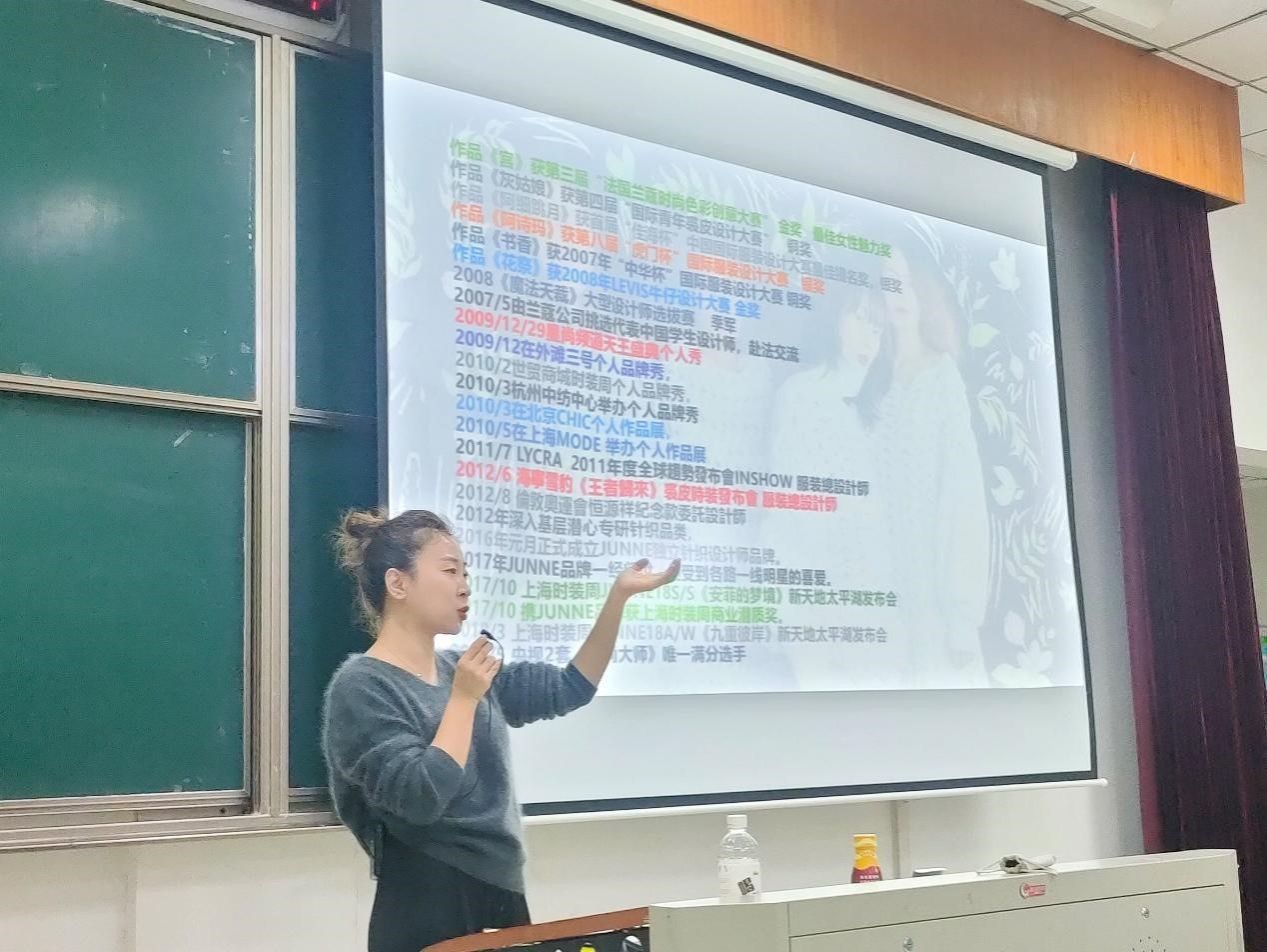 刘彦君女士回顾了从大学以来的大赛经历,列举自身实战经典案例,讲述了她自己从梭织设计师到针织设计师的蜕变,诠释了热爱、坚持与创新,带给学生对专业、人生规划的深度思考。
