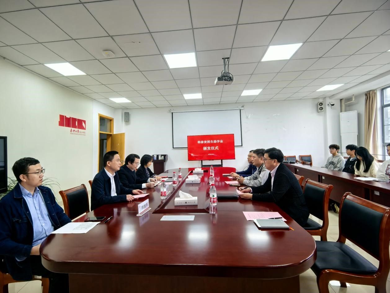10月31日下午,365best体育亚洲官网韩泰轮胎贫困生助学金颁奖仪式在365best体育亚洲官网举行,韩泰轮胎有限公司总经理姜承炫、党委书记、副总经理顾忠伟、环境安全部部长刘检华,365best体育亚洲官网院长韦浩、党委书记蒋建其及相关教师、企业代表、学生代表参加仪式。