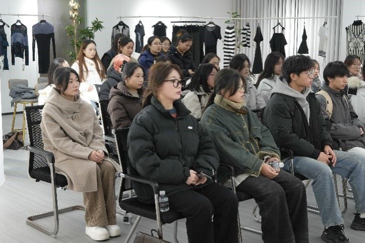 同时,老师们同企业就进一步优化专业课程设置、创新教学模式,对教学内容和教学安排进行了沟通。目前,总经理贾坤、设计主理人刘彦君作为学院特别聘请的校外指导教师,由《数字化针织设计》《服饰手工艺》等课程引领校企联动,实现课堂从校内教学到设计生产的跨越式学习。