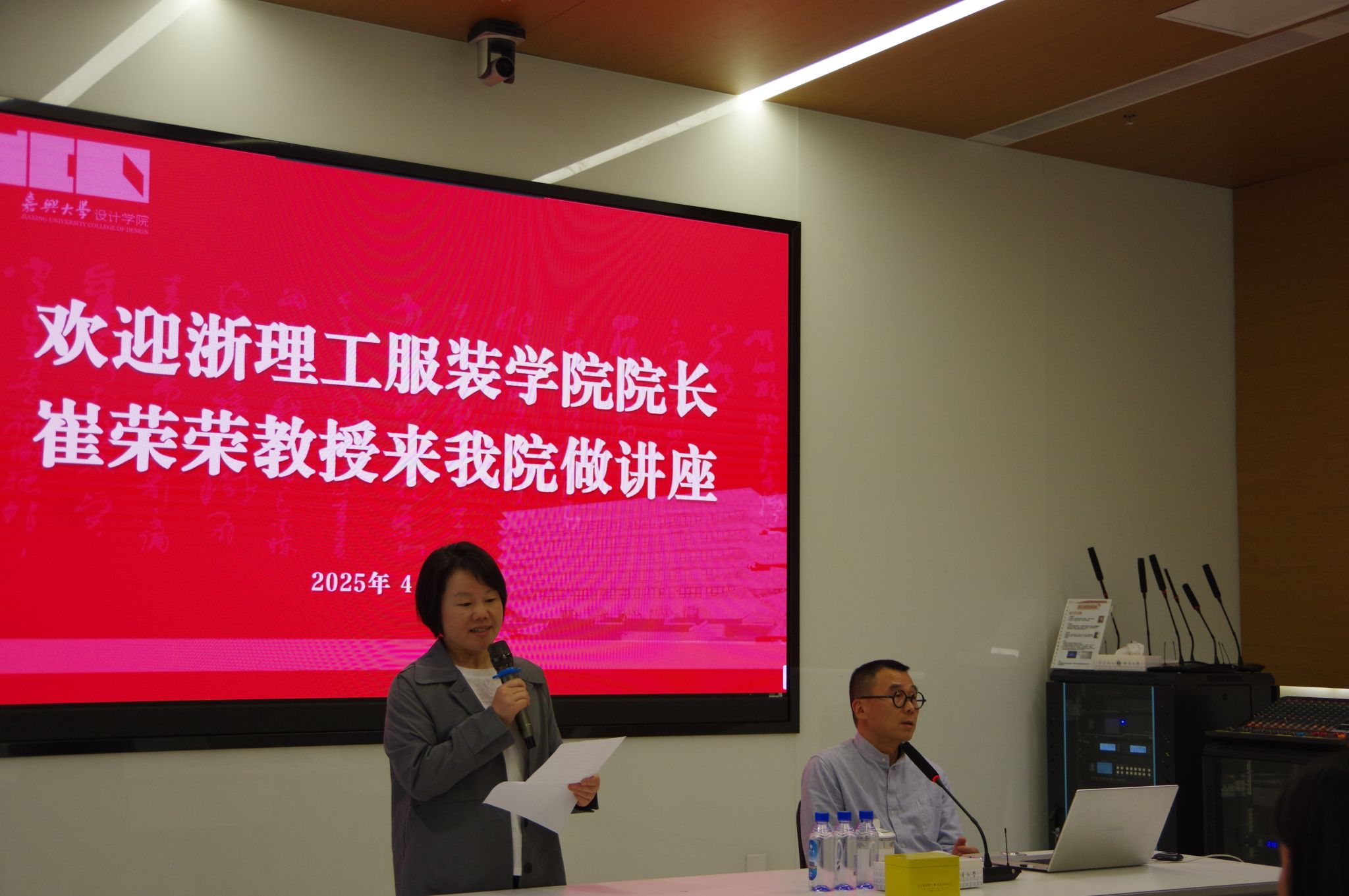 2025年4月15日下午,365best体育亚洲官网邀请了浙江理工大学服装学院院长崔荣荣教授,在图书馆二楼会议室带来了一场精彩纷呈的专题讲座。报告以“中华服饰与衣文明构建”为主题,旨在探讨中华民族服饰艺术韵律、国潮文化时尚设计以及中华衣文明的构建。会议由我院教学院长裘玉英主持,现场吸引了众多师生前来聆听。