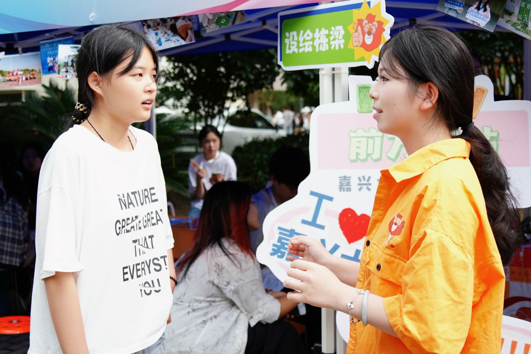 学院专属合影区将IP形象与设计元素巧妙融合,萌趣装置与主题背景成了热门打卡地。新生们在这里留下与嘉大设计的第一张合影,笑容定格,仪式感满满。
