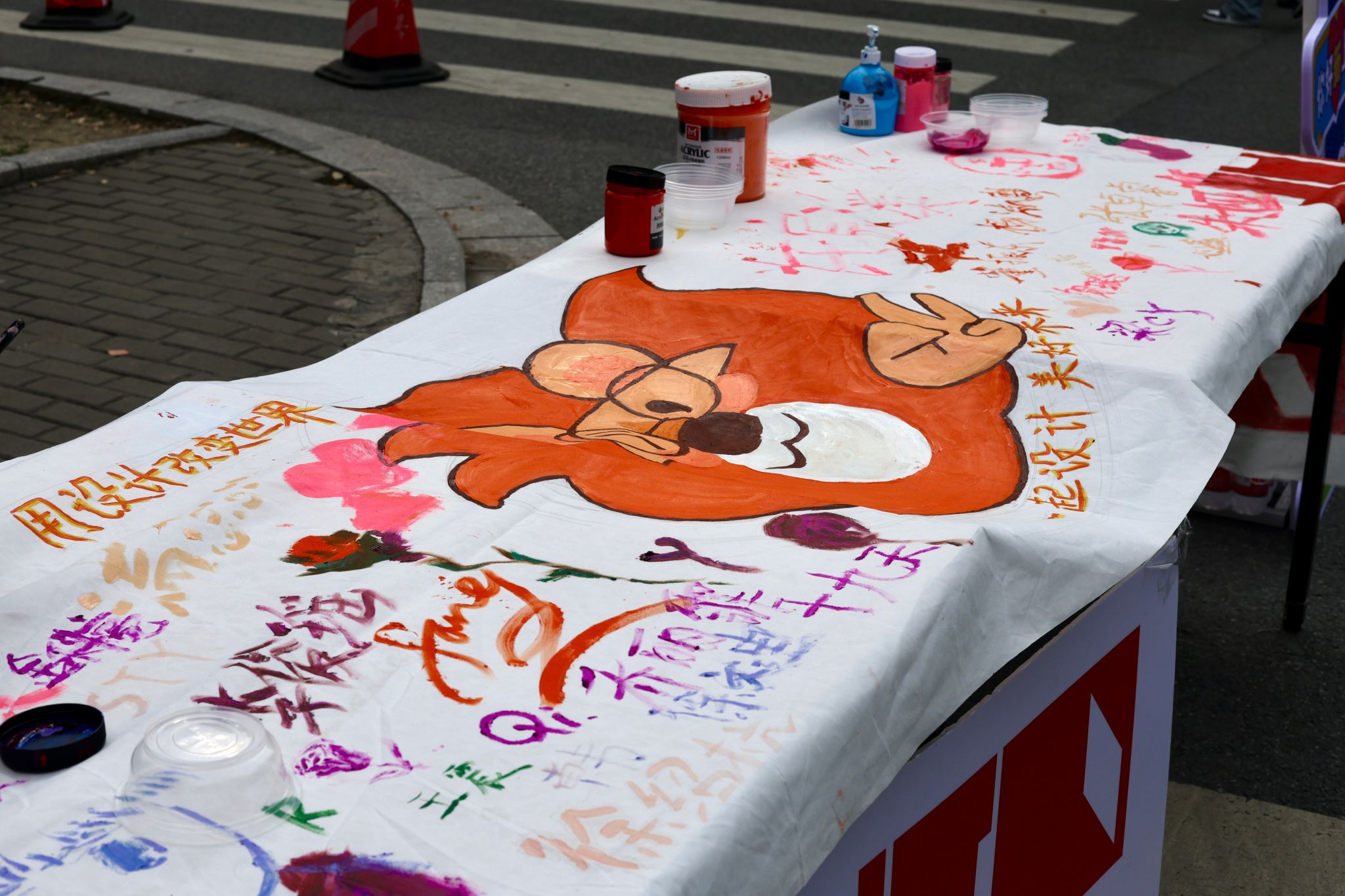 长卷共绘点:同学们执笔共绘,以斑斓色彩书写大学新愿,长卷成图,梦想启航;