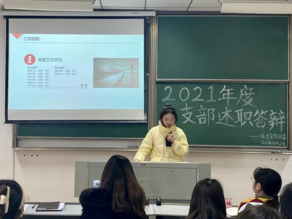 述职答辩结束后,吴芳芳老师发表讲话,她对各团支部过去一年成果给予了认可和肯定,同时也指出了各支部有待提高的几个方面:各支部应加强政治理论的学习,以进一步提升理论水平、思想觉悟和政治素养;各支部应加强交流学习,充分汲取优秀团支部工作开展的经验;团日活动形式还应不断创新,将专业特色与每月团日活动主题相结合。最后希望各团支部能提前谋划2022年建团100周年的各项安排,让团支部焕发出更加蓬勃的生机,展现出设计青年独特耀眼的风采!
