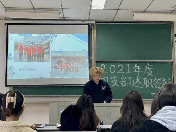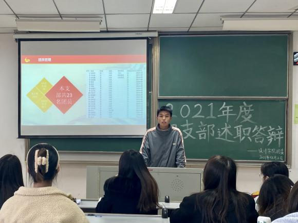 述职答辩中,各团支书围绕班子建设、团员管理、组织生活、制度落实、作用发挥等方面展开述职。汇报团支部这一年组织建设情况、活动开展情况、以及团支部现存不足、今后计划等。