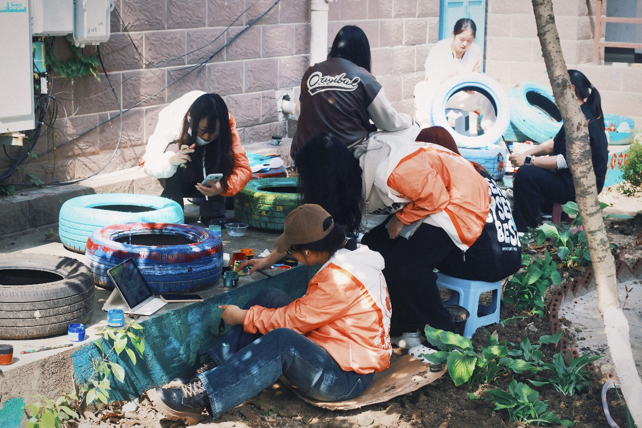4月11日365best体育亚洲官网“绘梦拾光”团队15名志愿者前往嘉兴市七星街道湘城社区,联合社区共同完成“星星湘汇·湘城有礼”志愿服务项目“一方花田”美化。